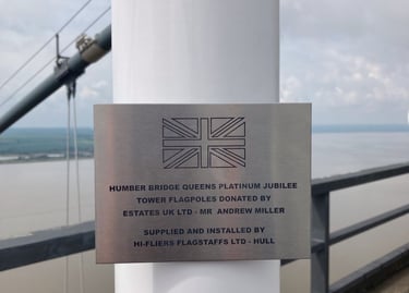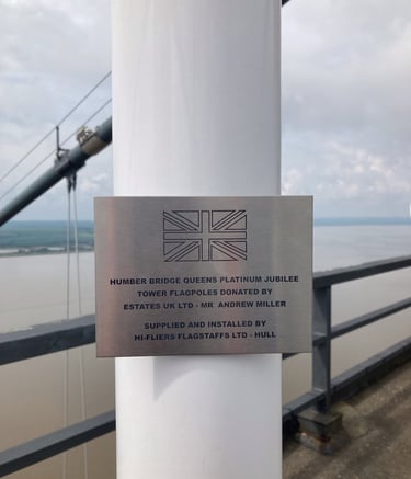 Two flagpoles were installed on the Humber Bridge, one on top of each of the 510ft (156m) high towers as part of the Queen's Platinum Jubilee celebrations in 2022.